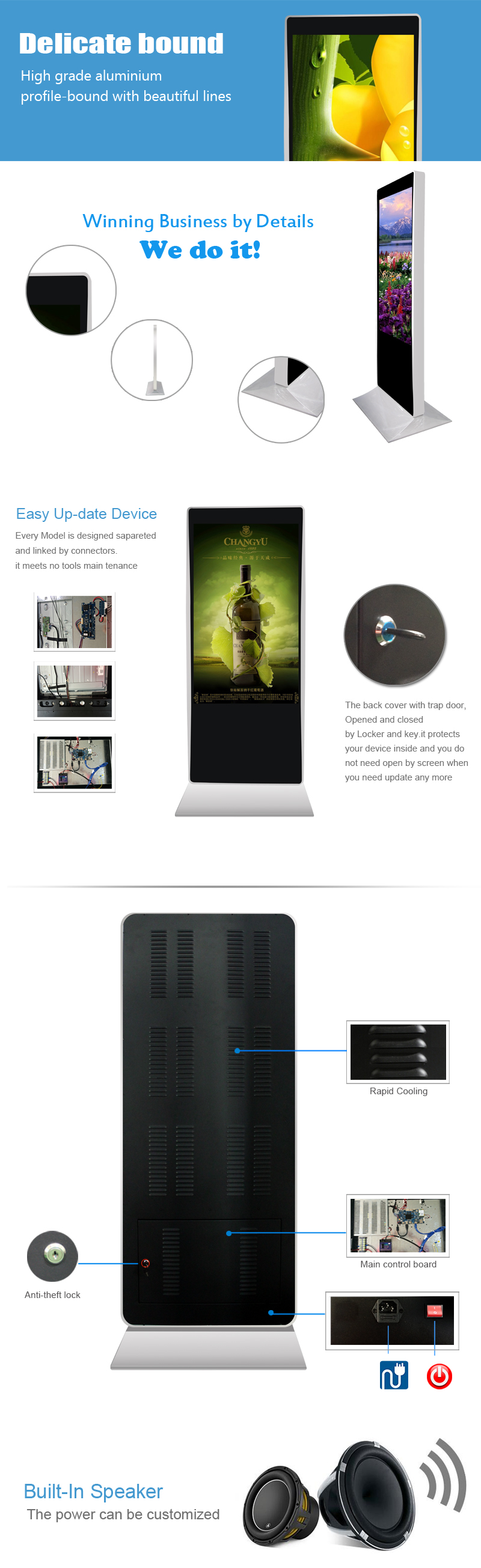 PC version kiosk (touch screen optional): its function is the same as computer (windows), can make self-service terminal kiosk with all kinds of extention function.