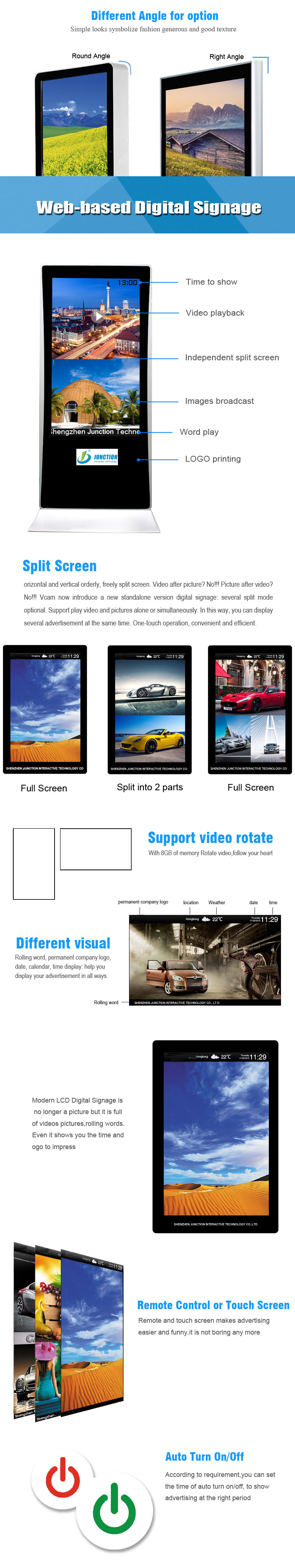 Perfect support for video / picture / caption / logo / Date Time Day / weather, etc. regional free split-screen combinations; support background images
